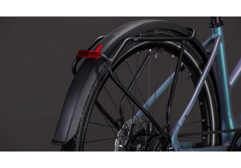 De Cube Editor Hybrid SLT 400X FE combineert het minimalistische uiterlijk van een elegant frameontwerp en een volledig carbon vork met de functionaliteit van een complete set accessoires, waaronder verlichting, spatborden, een bagagedrager en een standaard. Het is uw discrete stadsbegeleider. Hij heeft een onderhoudsarme, schone Gates-riemaandrijving en een Shimano 11-speed Alfine-naafversnelling. De lichtgewicht, soepele en krachtige SX-aandrijving van Bosch en de 400 Wh-accu werken samen om je op weg te helpen. De brede, comfortabele en snel rollende Schwalbe Marathon Efficiency Evo 50 mm-banden trotseren de straten van de stad met gemak, en de krachtige Shimano Deore hydraulische schijfremmen zorgen voor je veiligheid. Het is echt een compleet pakket.